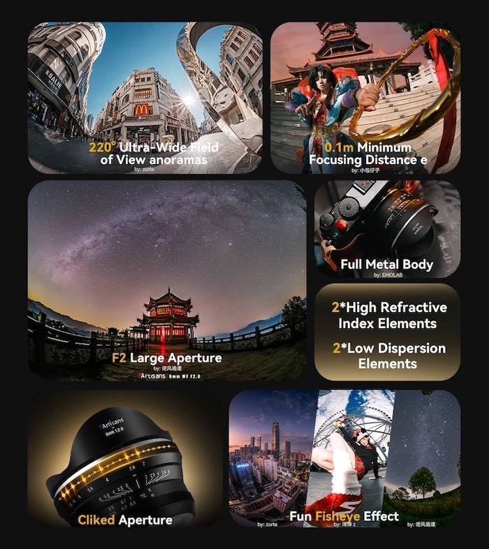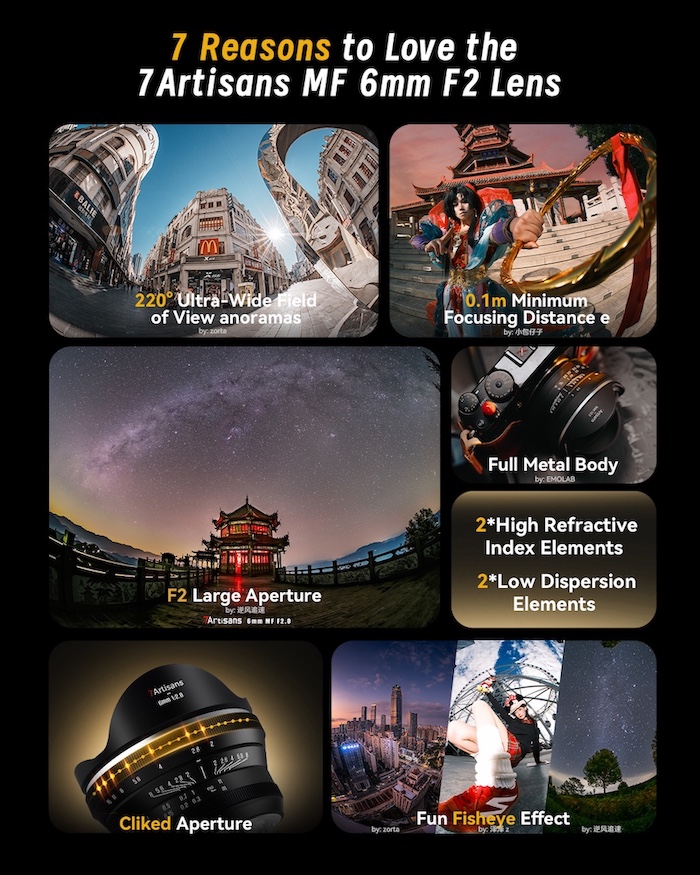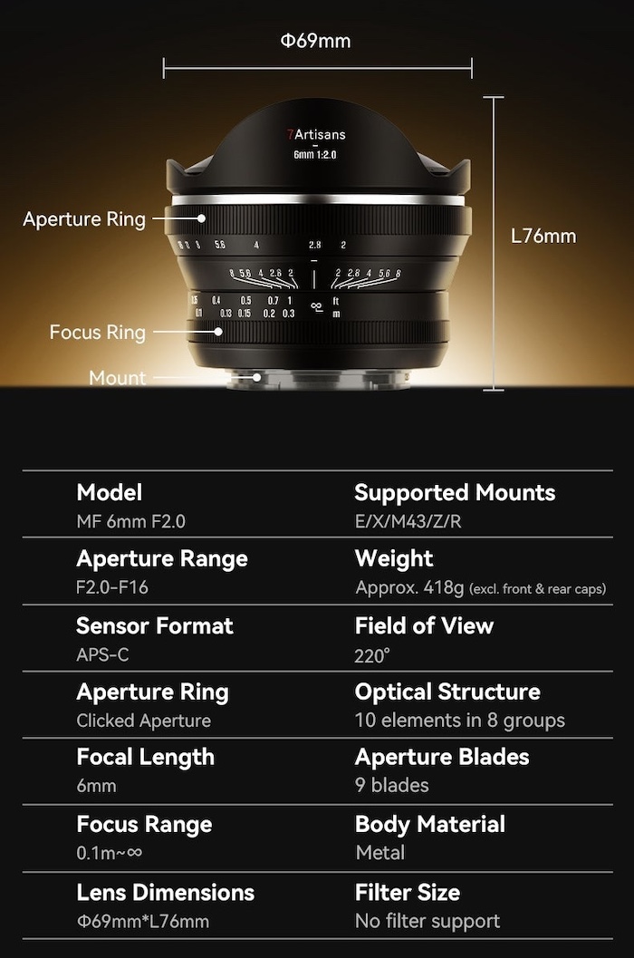 The previously reported 7Artisans MF 6mm f/2 220° fisheye lens for Micro Four Thirds is now officially announced:
