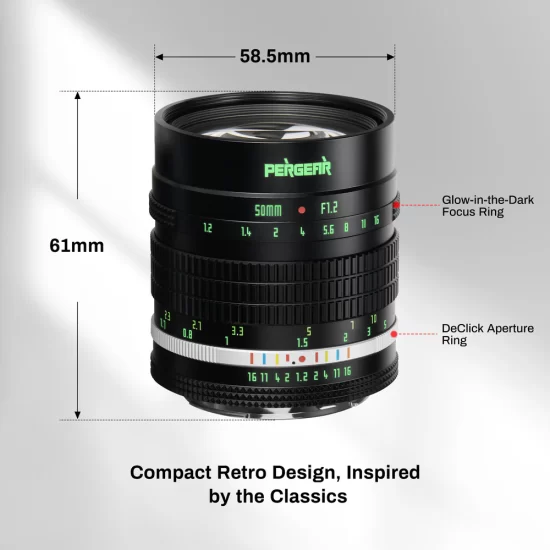 Pergear announced a new retro 50mm f/1.2 APS-C manual focus lens for MFT. Orders are now open at Amazon and Pergear.